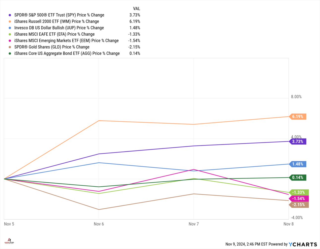 This week on TCAF, Josh and Michael were joined by returning guest Katie Stockton, Founder and Managing Partner at Fairlead Strategies. They discussed the election's impact on the market, the explosion in financial stocks, reasons to be cautious, small caps vs the S&P, the benefit of technical analysis, and Bitcoin as a reserve currency. (Listen)