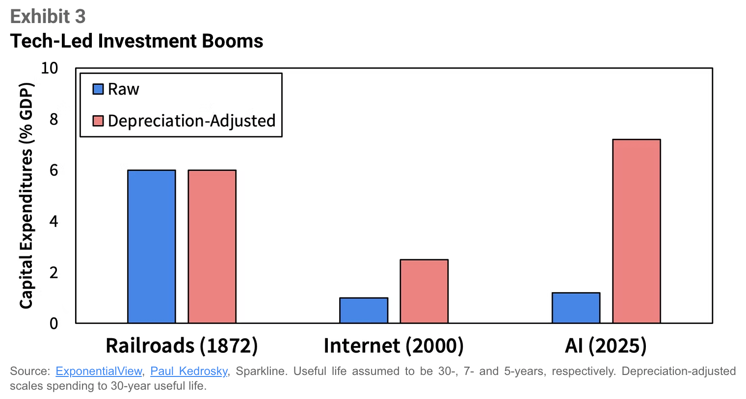 Prior TCAF guest, Kai Wu of Sparkline Capital, published a notable report this week on the AI capex boom. He examines some of the obvious and not-so-obvious winners, noting the greater risk the leading AI players are taking by now spending so much on everything compute-related. He writes: