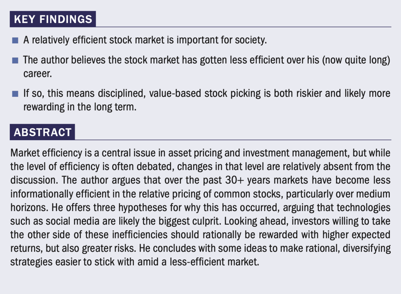 This week on TCAF, Josh mentioned Cliff Asness’ paper The Less-Efficient Market Hypothesis. The paper is a great overview of the past few decades in markets, including the rise of social media and why market efficiency doesn’t necessarily move in a straight line. In short, it takes capital to reverse mispricing, and that is a risky endeavor. Asness writes: